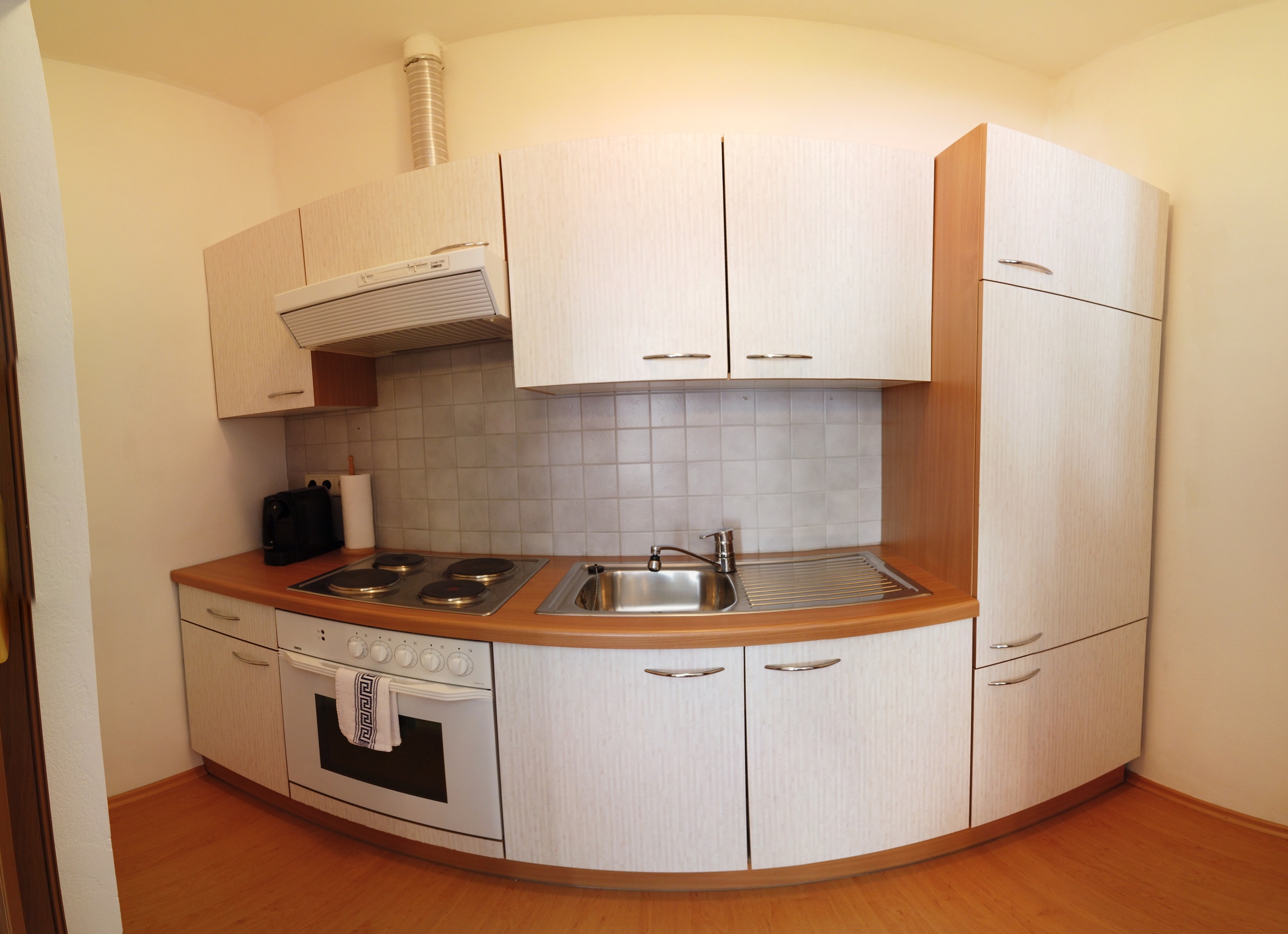 Die private Küche im Apartment umfasst Kühlschrank, Gefrierfach, Mikrowelle, Backrohr, Kochfeld, Kaffeemaschine, Wasserkocher sowie zahlreiche Extras.